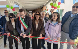 Il taglio del nastro alla scuola dell’infanzia e primaria, da parte del sindaco Michele Moretti nella mattina di ieri, giovedì 23 aprile