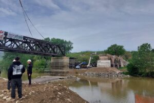Ieri è stato posizionata la prima campata di traliccio della lunghezza di circa 40 metri, cui ne seguirà un’altra nei prossimi giorni