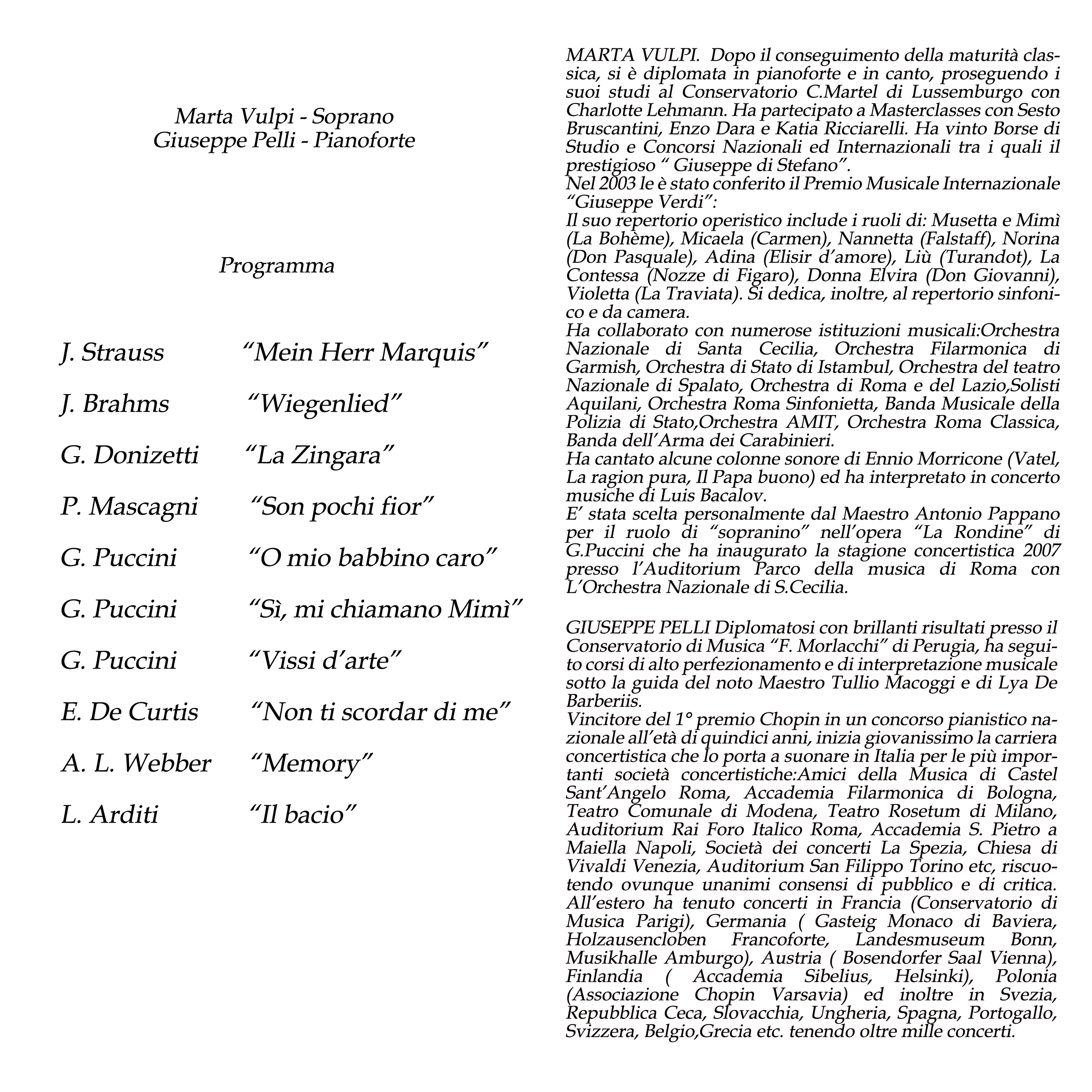 Da segnare sul carnet che domenica 23 dicembre, sempre al Teatro Comunale (alle ore 17.30), si terrà il “Concerto degli Auguri” con protagonista Marta Vulpi, soprano, accompagnata al pianoforte del Maestro Giuseppe Pelli. In programma musiche di Strauss, Brahms, Doninzetti, Mascagni, Puccini, De Curtis, Webber e Arditi.