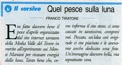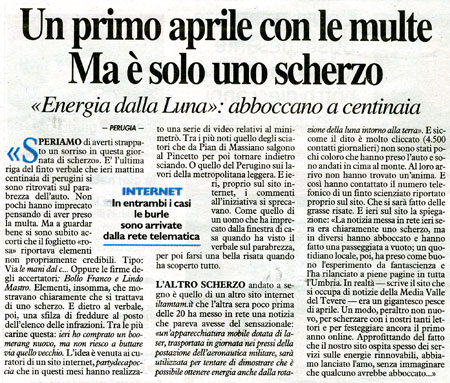 Con grande presenza di spirito pure il “Giornale dell’Umbria”, che il giorno prima aveva preso per buona la notizia rilanciandola a sua volta, ha dedicato un apprezzato corsivo in prima pagina allo scherzo di TamTam.