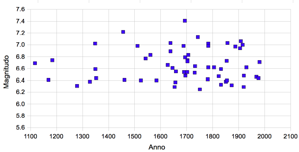 In Italia ci sono stati tra il 1100 ed oggi 59 terremoti catastrofici (con magnitudo maggiore o uguale a 6.3).