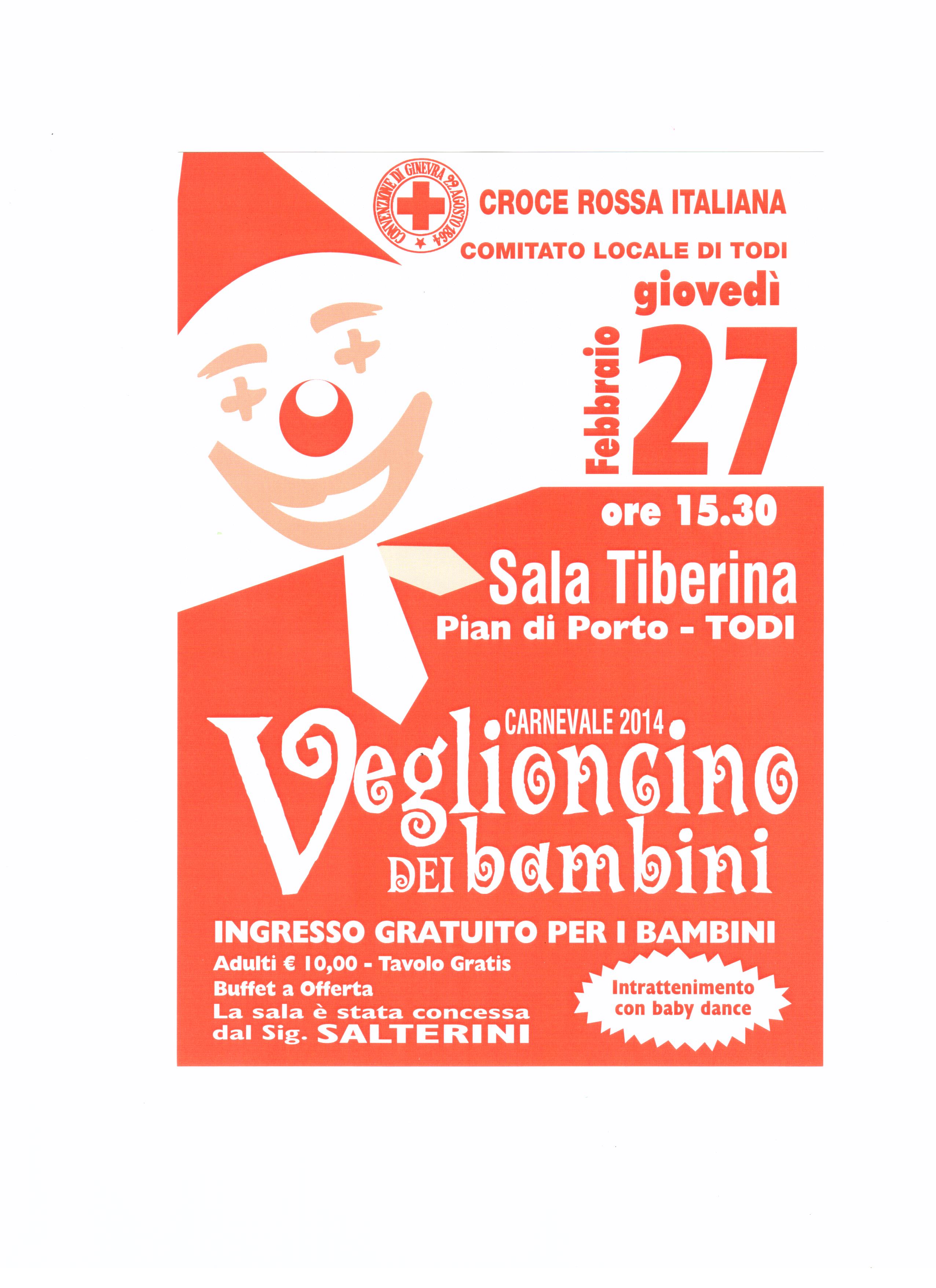 Organizzato, come al solito, dal comitato tuderte della Croce Rossa, si svolgerà il 27 febbraio a partire dalle 15.30 presso la Sala Tiberina di Pian di Porto,concessa gratuitamente dai proprietari, il tradizionale Veglioncino dei Bambini in occasione del Carnevale. veglioncino