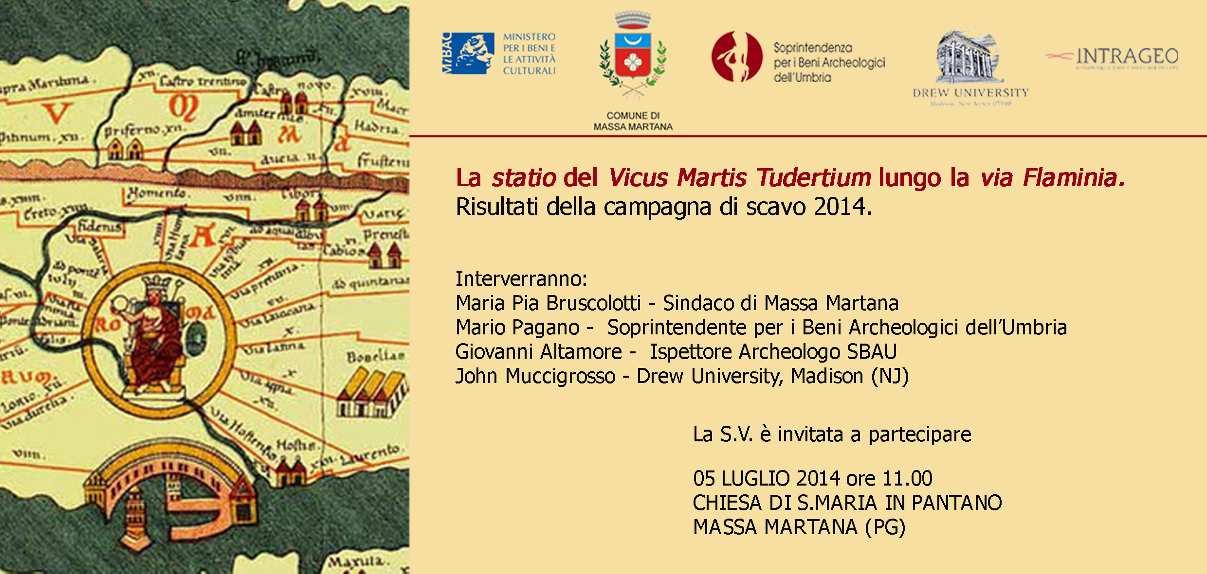 La presentazione dei risultati degli scavi archeologici 2014 del Vicus Martis Tudertium, avverrà presso la Chiesa Santa Maria in Pantano – Comune di Massa Martana, il giorno 05 luglio 2014 alle ore 11.