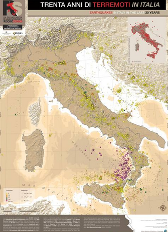 Una carta «Trenta anni di terremoti in Italia» è stata progettata e realizzata dal Laboratorio di cartografia digitale e sistemi informativi geografici dell’Ingv sede Irpinia, a cura di R. Moschillo, M. Pignone, C. Nostro