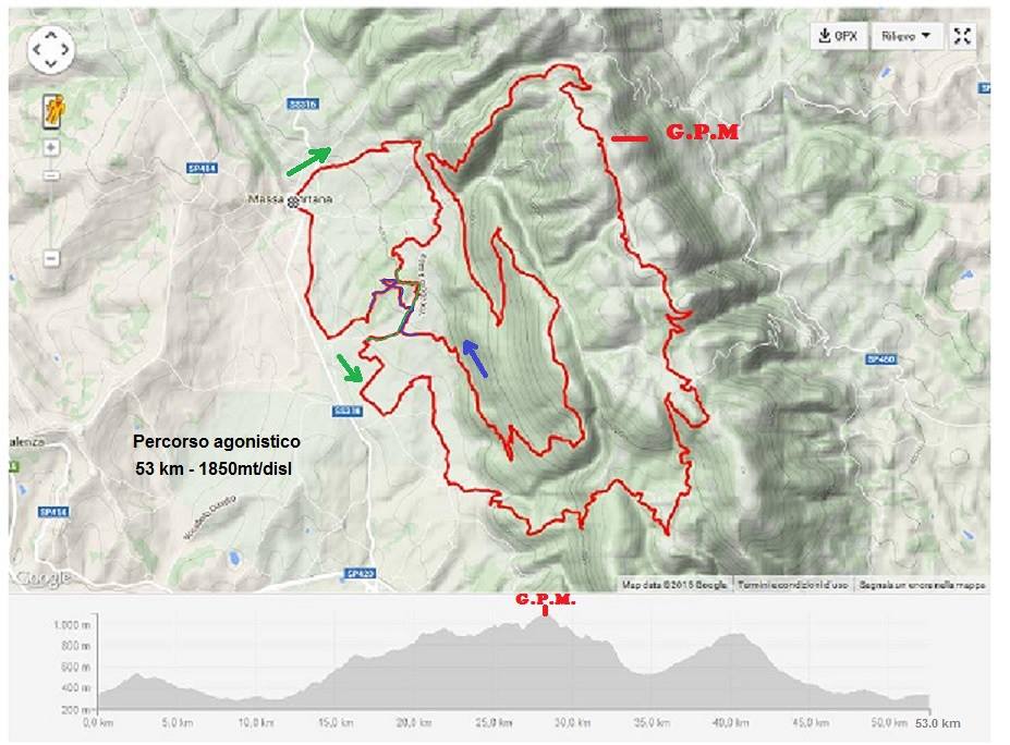 Sono state apportate solo alcune modifiche nella partenza che è stata allungata in modo da sgranare il gruppo e permettere di affrontare la discesa verso Colpetrazzo in completa sicurezza e poi in quota dove si attraverserà la pineta di “Cima Panco” appena dopo il primo ristoro, per ridiscendere verso Casetta San Severo e procedere spediti verso il gran premio della montagna.
