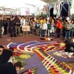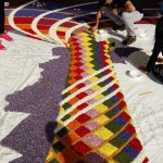 All’Expo di Milano quello di oggi è stato il gran giorno degli Infioratori di Spello: lungo il “Cardo”, uno dei due assi su cui è costruita la struttura del sito espositivo, le mani esperte di una quarantina di infioratori hanno realizzato, sotto gli occhi affascinati dei visitatori, un tappeto floreale di circa 30 metri quadrati che, nel rispetto del tema dell’esposizione universale “Nutrire il pianeta, energia per la vita”, raffigura l’albero della vita, simbolo di Expo 2015, affiancato da fiori e animali e dai tetti e campanili della città umbra, con in primo piano un uomo intento a seminare.