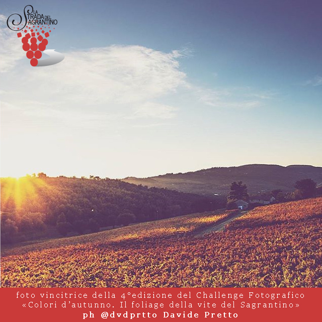 Andrea Costa (@streetforararat), Davide Pretto (@dvdprtto), Olga Merolla (@beautiful_umbria) sono i tre vincitori della quarta edizione di ‘Colori d’autunno. Il foliage della vite del Sagrantino’, contest promosso dall’associazione Strada del Sagrantino e dedicato agli appassionati di fotografia, sia analogica che digitale, che si è disputato sui social network Instagram, Facebook e Twitter.