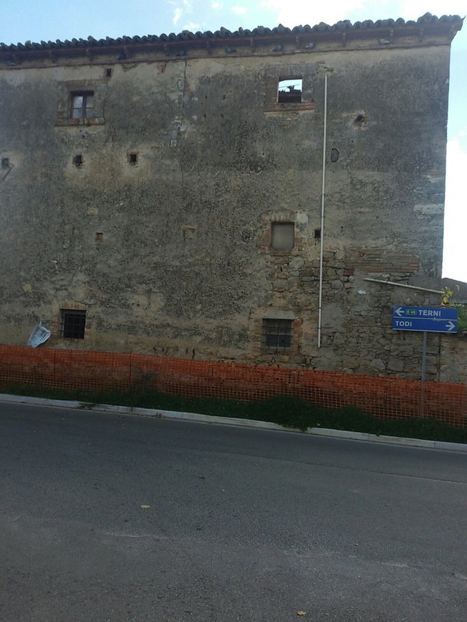 Una casa posta sul ciglio della strada provinciale 414 all’ingresso ovest di Massa Martana, di fronte al Mattatoio Comunale, risulta pericolante.
