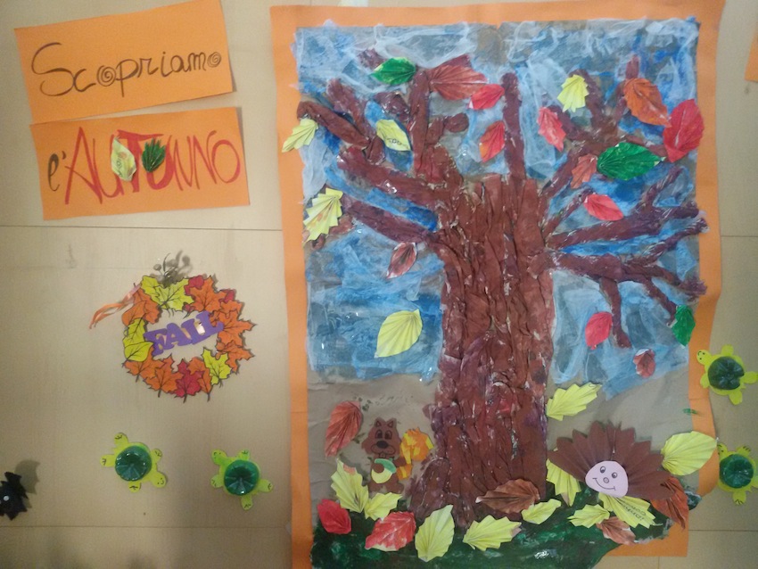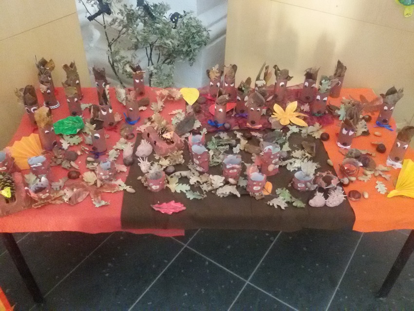 L’autunno ha visto come protagonista carta e cartone che, tagliato e riciclato, si è trasformato in ricci, cerbiatti, tartarughe e paesaggi tipici dei boschi autunnali.