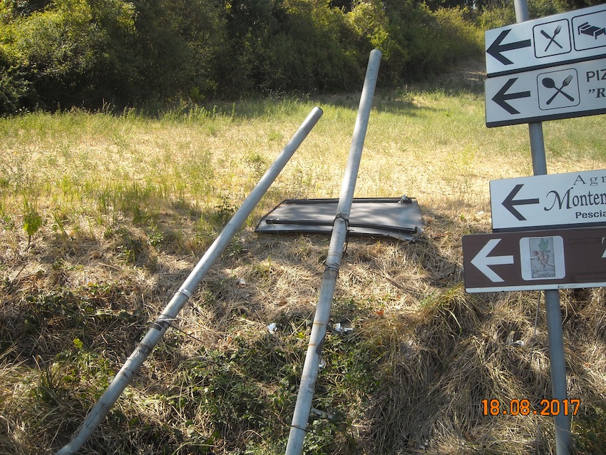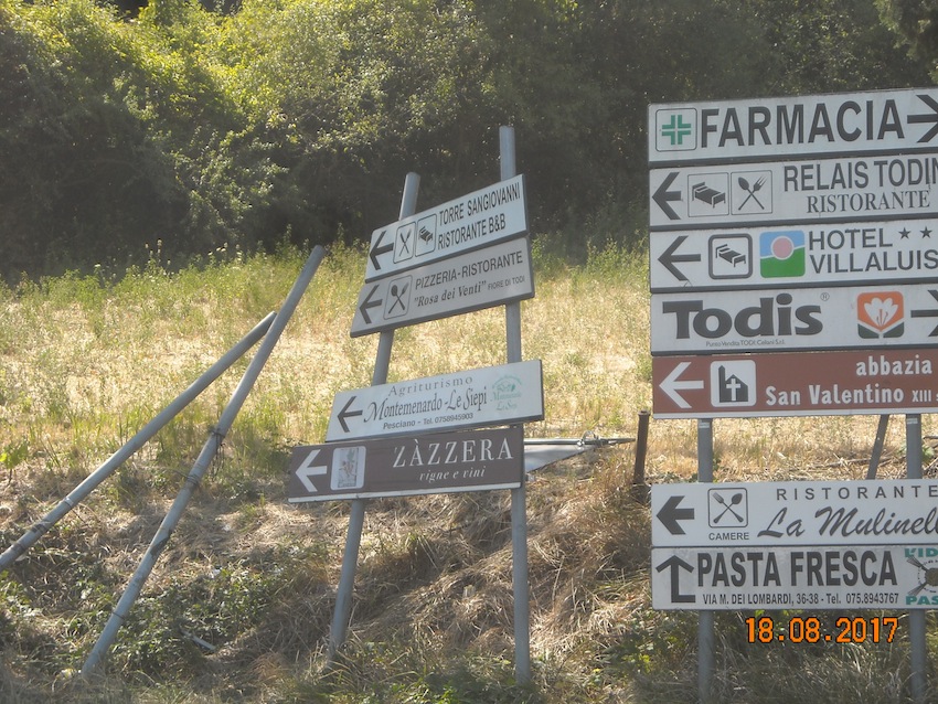 Un nostro lettore ci ha inviato una segnalazione di situazione di degrado che si presenta alla vista di cittadini e turisti, all’uscita dalla superstrada E45 di Todi San Damiano, con cartelli indicatori divelti e improvvisate strutture in legno per cartelli pubblicitari, in stato fatiscente, che non rappresentano di certo un bel biglietto da visita per una città che vorrebbe puntare sul turismo.