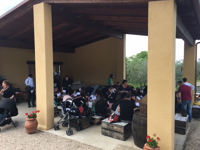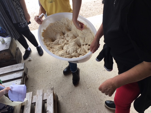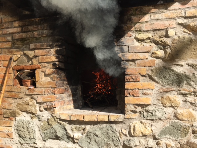 Tutto è stato predisposto per ricostruire i gesti tradizionali del pane fatto in casa che venivano messi in pratica nelle case contadine delle nostre nonne. Il forno, rigorosamente a mattoni, è stato riscaldato con le fascine di legna già predisposte. Nel frattempo che le fascine facessero il loro dovere, riscaldando ben bene il forno, tutti i convenuti si sono ristorati con le crostate fatte in casa ed il pane ed olio della fattoria.