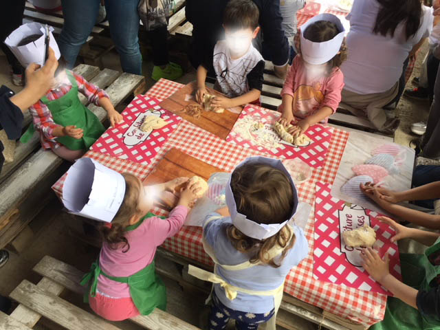 La gita, con la presenza ed il supporto delle educatrici dell’asilo, è entrata poi nel vivo del programma che ha visto i bambini impegnati nell’antica arte della panificazione. I piccoli fornai, dotati ciascuno di cappellino e grembiule, hanno avuto ognuno un pezzo di pasta già lievitata, che con l’aiuto di un po’ di farina hanno dovuto lavorarla con le proprie mani per realizzare una pagnotta pronta da infornare, per provare un’esperienza sensoriale grazie al contatto delle mani con la pasta e la farina. Tutte le pagnottine sono state poi rimesse in lievitazione prima della cottura in forno.