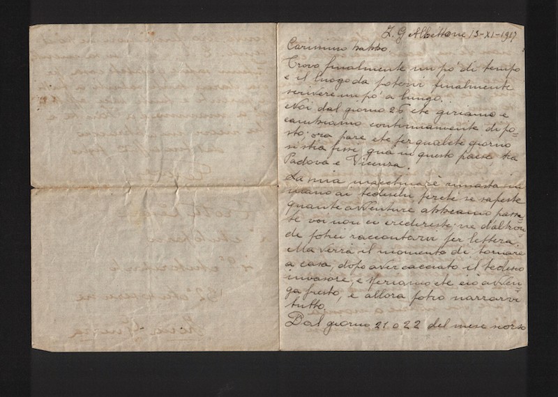 13 novembre 1917, Zona Guerra. Una lettera parte dal fronte della Prima Guerra Mondiale, tra Padova e Vicenza. È la lettera scritta dal giovane soldato Cesare Trotti (nella foto il primo da destra, in piedi), classe 1898 e diretta al padre Aristide. La lettera autografa è stata tramandata integra, ai giorni nostri, al nipote Claudio, romano come i suoi avi, ma residente a Todi ove è recentemente scomparso.