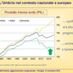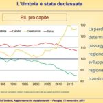 Il Pil per abitante della regione, fatta 100 la media dell’Ue a 28 Stati, è passata da un incide di 104 a uno di 83 tra il 2016 e il 2017, perdendo ben 21 punti percentuali rispetto alla media Ue a 28. Questa perdita così consistente ha determinato il passaggio dell’Umbria da regione tra “le più sviluppate” a “regione in transizione”.