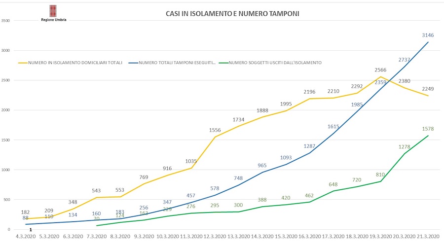 Nel complesso entro le ore 8 del 22 marzo, sono stati eseguiti 3146 tamponi.