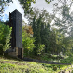 La Torre degli ascensori prevede una struttura in acciaio brunito e opacizzato, con un basamento rivestito da grandi lastre lapidee.