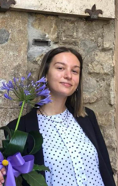 La giovane marscianese frequenta il liceo Scienze umane Jacopone da Todi. Ed è stata la prima a dover affrontare l’esame di maturità della sua scuola. Timori? “Essendo stata la prima inizialmente l’ho vissuta con molta ansia. Quando sono arrivata e ho iniziato ad esporre l’elaborato mi sono tranquillizzata molto. I professori sono stati molto clementi sapendo che questi ultimi due anni sono stati in dad, infatti mi hanno fatto poche domande”. L’esame? “Il tema dell’elaborato era educazione e società. Per l’italiano Eugenio Montale (“ho sceso, dandoti il braccio, almeno un milione di scale”). Un autore che mi è sempre piaciuto. Poi i nuclei. Ho guidato io il discorso partendo dall’argomento che era “scuola e società” praticamente come il mio elaborato. In chiusura ho esposto l’alteranza scuola lavoro fatta in questi anni”. Futuro? “Mi piacerebbe fare l’università di scienze della formazione primaria per diventare maestra, ma ancora sono incerta”.