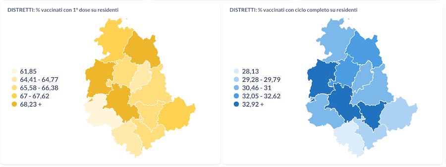 Secondo i dati regionali la percentuale di vaccinati con prima dose su residenti nel distretto Todi-Marsciano si attesta al 69,15%, contro – per fare qualche esempio – il 61,85 di Orvieto o il 66,38 di Perugia. Stesso trend riguardo ai vaccinati con ciclo completo su residenti, con Todi-Marsciano a primeggiare con un 33,45%, a fronte del 28,13 di Narni-Amelia, o del 30,99 di Assisi.