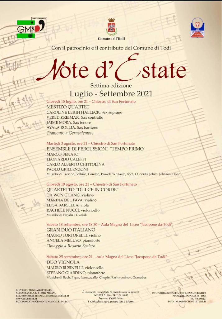 La rassegna internazionale da camera “Note d’estate”, curata da Stefano Giardino e da Lucia Mencaroni, giunge felicemente alla sua settima edizione.