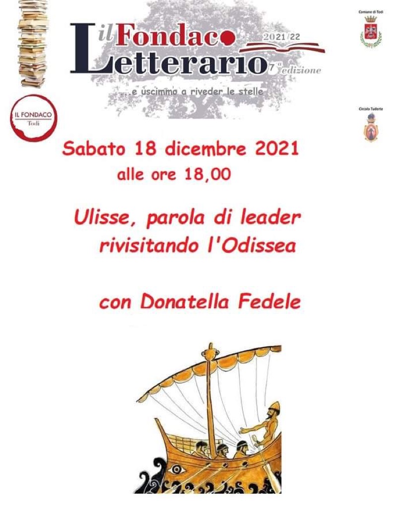 Nuovo appuntamento con il Fondaco Letterario che ha ripreso i suoi eventi culturali. Sabato 18 dicembre alle ore 18.00 è in programma “Ulisse, parola di leader rivisitando l’Odissea”, con Donatella Fedele.