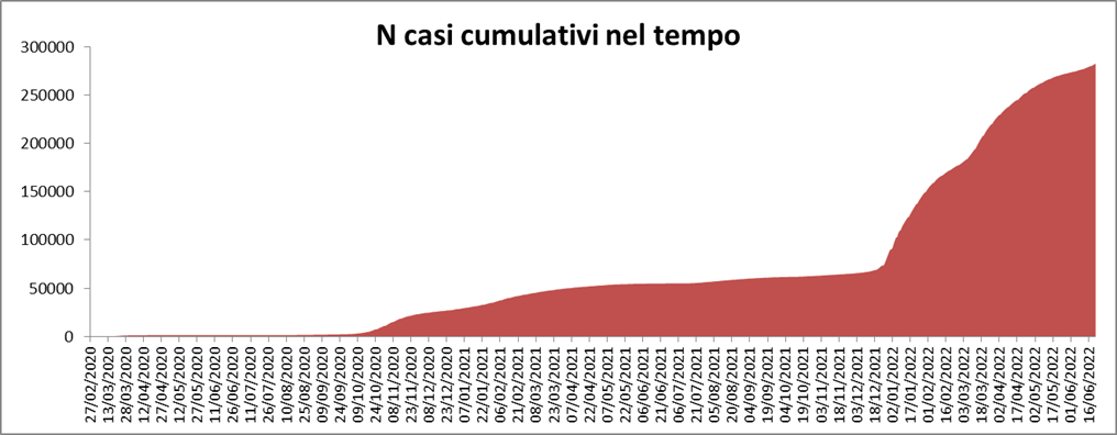 I casi SARS-CoV-2 positivi in Umbria al 22 giugno 2022