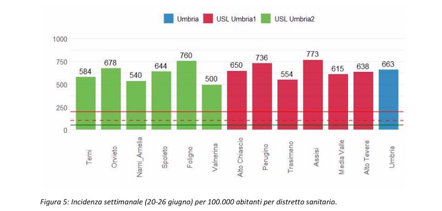L'RDt è in aumento attestandosi ad un valore di 1,51 e l'incidenza settimanale mobile per 100.000 abitanti al 28 giugno è pari a 823 casi