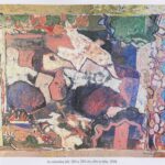 L’uovo, il bambino, la taccola, le forme giunoniche delle donne mollemente rilassate, i festoni di frutta, i richiami barocchi scandiscono il ritmo incessante del divenire nella pacata dolcezza di ritmi che richiamano lontani suoni di chitarre spagnole, a lui così care (Giuseppe Passeri).