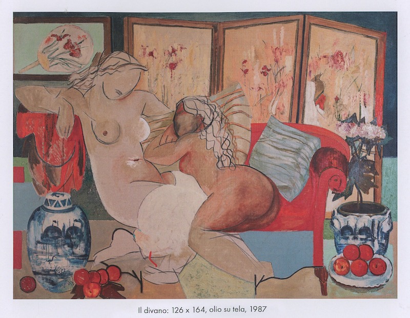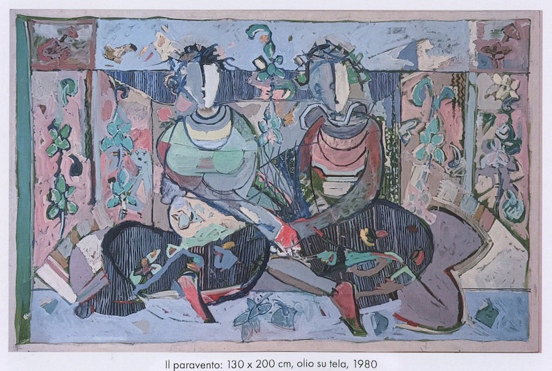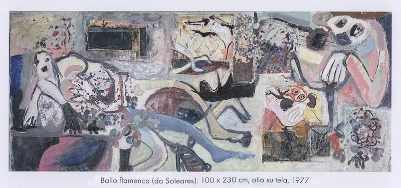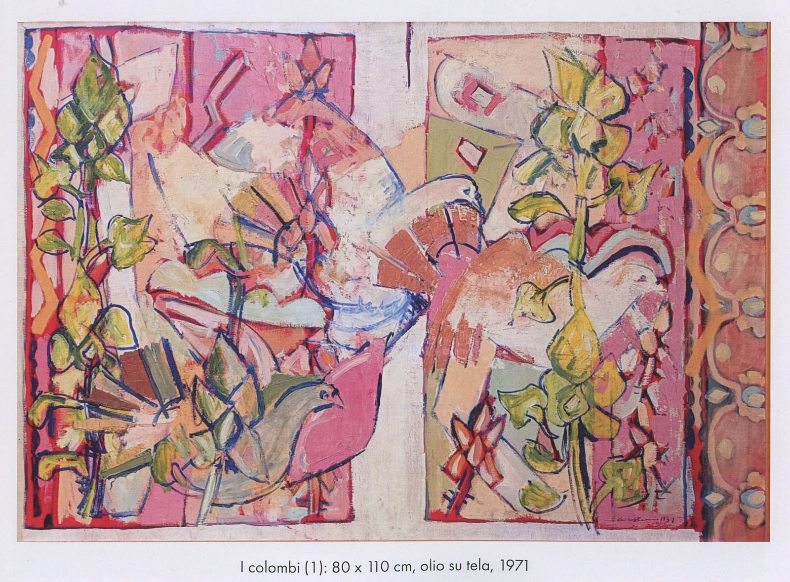 L’uovo, il bambino, la taccola, le forme giunoniche delle donne mollemente rilassate, i festoni di frutta, i richiami barocchi scandiscono il ritmo incessante del divenire nella pacata dolcezza di ritmi che richiamano lontani suoni di chitarre spagnole, a lui così care (Giuseppe Passeri).