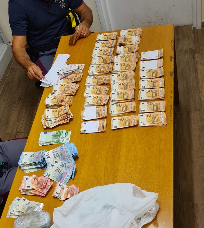 Sospettando che potesse nascondere qualcosa, hanno effettuato una perquisizione sia della persona che del veicolo. La perquisizione ha portato al rinvenimento di cinque panetti di sostanza stupefacente di tipo “hashish”, ciascuno del peso di 500 grammi, all’interno del bagagliaio del taxi. In una busta, sono stati trovati 61.300 euro in contanti, presumibilmente provento dell’attività di spaccio. Inoltre, sono stati scoperti altri 1.105 euro nel marsupio del conducente.