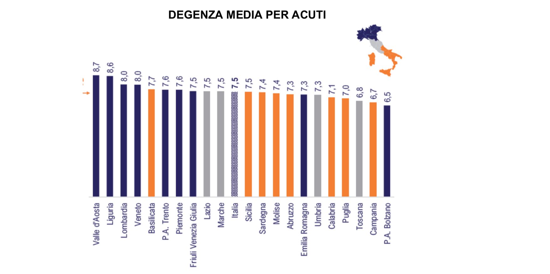 Buona la classifica anche per la Degenza media per acuti, che si attesta a 7,3 giorni (al sesto posto della graduatoria).