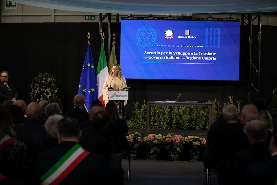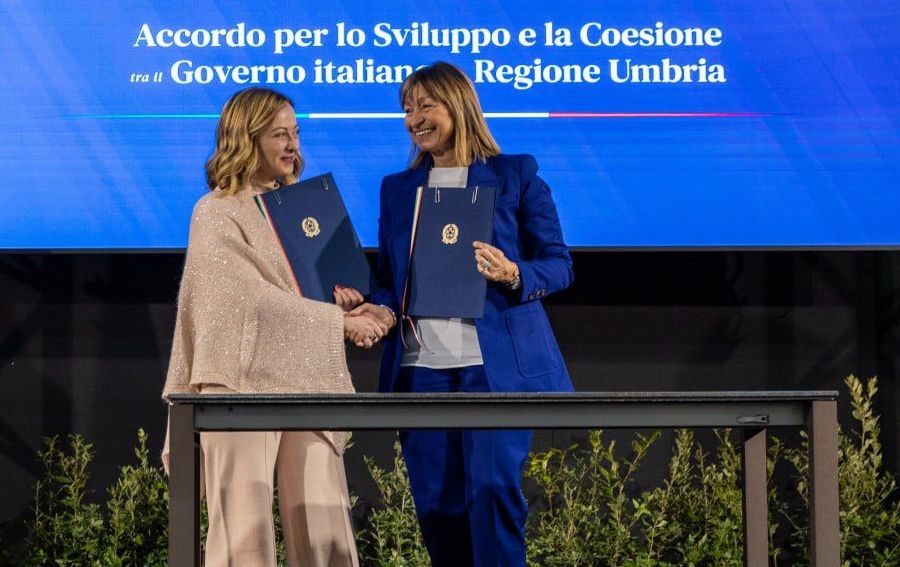 La presidente del Consiglio dei ministri Giorgia Meloni e la presidente della Regione Umbria, Donatella Tesei, hanno sottoscritto stamani a Bastia Umbria l’Accordo per la coesione che assegna all’Umbria le risorse del Fondo per lo sviluppo e la coesione per il ciclo di programmazione 2021-2027 per un importo totale di 210,496 milioni di euro, dei quali 61 milioni di cofinanziamento regionale. Era presente anche il ministro per la Coesione, Raffaele Fitto.