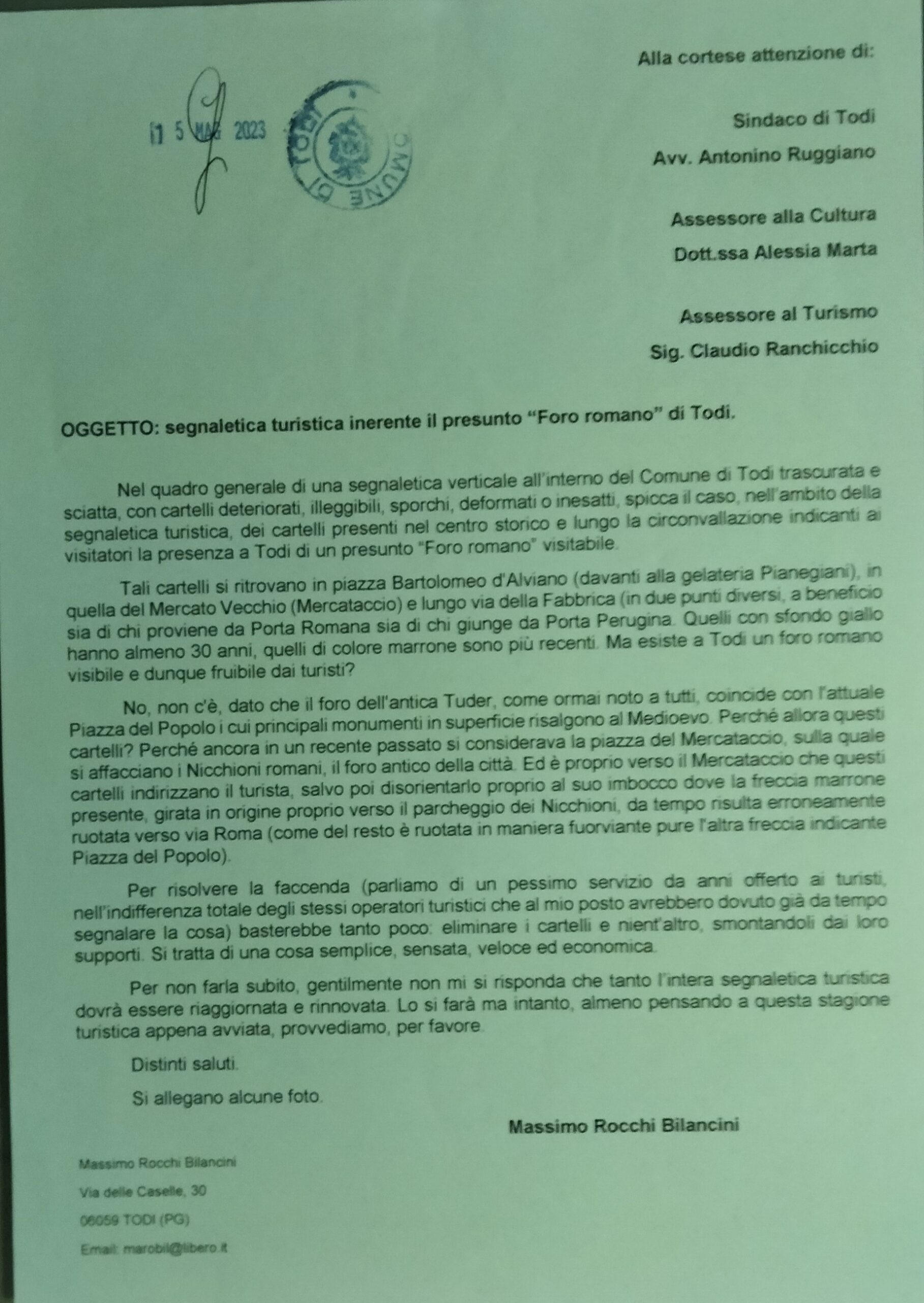 Quasi un anno fa, nel mese di maggio 2023, chi scrive ha inviato una dettagliata lettera (in allegato) con tanto di foto e didascalie al Sindaco di Todi Antonino Ruggiano, all’Assessora alla Cultura Alessia Marta e a quello del Turismo Claudio Ranchicchio, chiedendo, in attesa di un rinnovamento e aggiornamento dell’intera segnaletica turistica in città, di rimuovere tali cartelli, semplicemente smontandoli dai loro supporti. Una soluzione che all’epoca avevo definito “semplice, sensata, veloce ed economica”. Bastava mandare un operaio a farlo. Ma a distanza di un anno nessuno ha risposto, nessun ufficio comunale è intervenuto, con la conseguenza che quei cartelli sono ancora al loro posto ad accogliere i turisti in arrivo nei prossimi giorni. Ancora lì a farci fare una pessima figura.