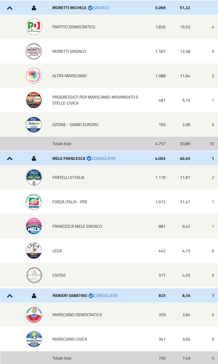 Questi i dati definitivi dei voti conquistati dai candidati e dalle liste: