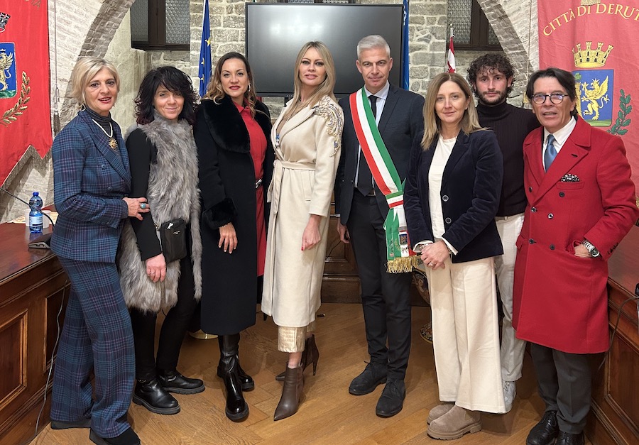 Poi è stato il momento dell’ospite d’onore Anna Falchi che ha manifestato tutta la sua emozione e felicità per vivere insieme alla comunità di Deruta questo importante e significativo momento. “Ringrazio in primis il Sindaco di Deruta per questo graditissimo invito, perché essendo romagnola passo spessissimo da queste parti dove mi fermo anche a mangiare le prelibatezze della vostra cucina umbra. La Città di Deruta si fa precedere dalla sua fama e tramite la ceramica porta il Made in Italy in giro per il mondo. L’incontro di oggi mi rimarrà nel cuore perché ho avuto modo di conoscere persone molto affettuose e cordiali e ho molto apprezzato la bellezza di questo Albero di Natale realizzato in Ceramica. Tra l’altro, essendo anche io un’artista, sono molto orgogliosa che la ceramica stia rivivendo una nuova linfa sebbene le contingenti difficoltà”.