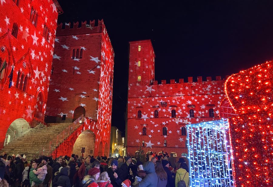 Con l’inizio dei canti del coro è stata accesa anche l’illuminazione natalizia architetturale dei Palazzi Comunali e del Duomo, particolarmente suggestiva. Al centro della piazza l’aiuola con l’albero di Natale ed il pacco regalo luminoso, oltre alla pista di pattinaggio su ghiaccio (ancora però in fase di “congelamento”).