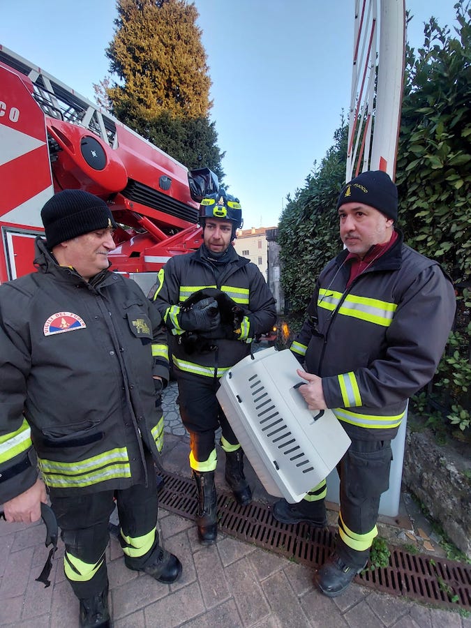 Una volta arrivata l’autoscala, dopo parecchi tentativi, con il gatto che era salito fino in cima all’albero, i Vigili del fuoco sono finalmente riusciti a recuperare la gatta e a riconsegnarla alla emozionata proprietaria, la signora Grazia, che ha così potuto riabbracciare la sua amata gattina. Tutto è bene quel che finisce bene…
