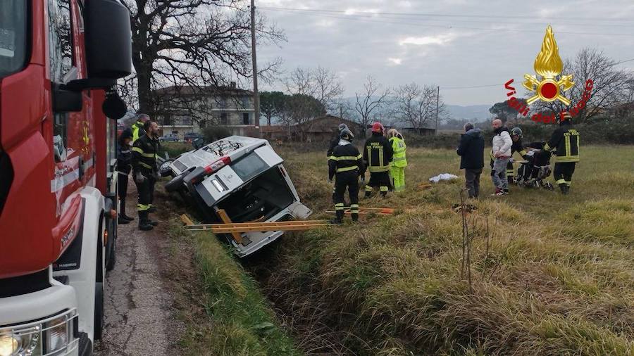 Questa mattina a San Nicolò di Celle di Deruta, un pulmino, con a bordo cinque persone, l’autista, un accompagnatore e tre passeggeri con disabilità, è uscito di strada, finendo nella scolina adiacente la strada e si è ribaltato su un fianco.