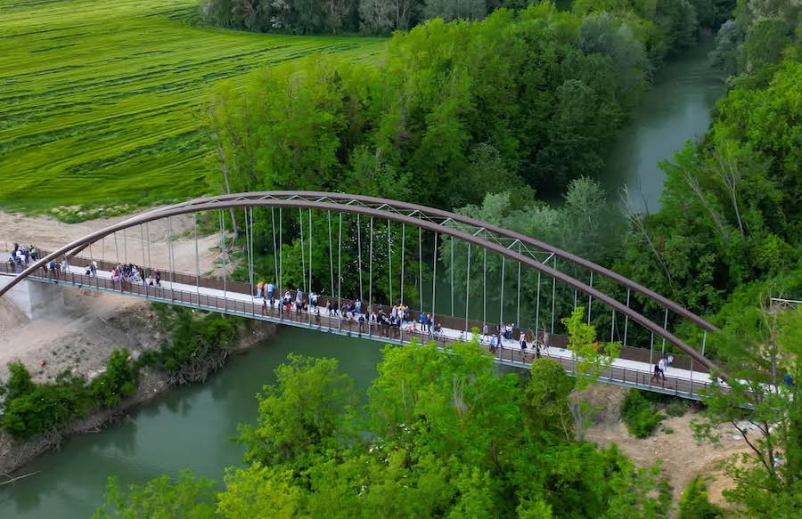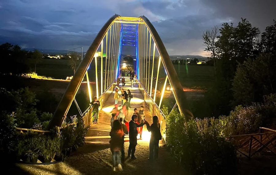 Ieri presso il Parco Fluviale di Torgiano è stata inaugurata la Passerella ciclopedonale sul Tevere, all’interno della “Torgiano Green Fest”, una giornata di festa all’aria aperta dedicata a tutti. Alla cerimonia del taglio del nastro hanno partecipato il Sindaco di Torgiano, Eridano Liberti, il Consigliere regionale Cristian Betti e Massimiliano Prosciutti Presidente della Provincia di Perugia.