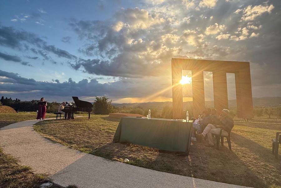 Da qui l’idea di concludere l’evento con un momento di grande suggestione, un binomio fra arte e note musicali, dove musica, voce e paesaggio, si sono fuse alla perfezione grazie all’esibizione, al tramonto, del maestro Stefano Ragni, al pianoforte, e della sublime voce della soprano Ester Sagripanti.