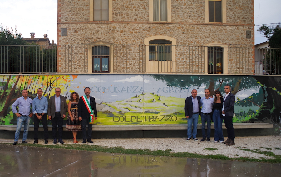La Comunanza Agraria di Colpetrazzo si conferma un punto di riferimento per l’aggregazione comunitaria, continuando a dar voce all’Articolo 3 del suo Statuto. Per questo, in occasione del Centenario, è stato realizzato un nuovo piazzale panoramico sul retro del Palazzo, che si affaccia sul Parco “Paolo Pagliochini” e offre un ulteriore luogo di incontro e socializzazione per il paese. A completare il progetto, gli artisti di Street Art Umbria, Paolo Legumi e Francesca Ortuso, hanno realizzato un murale dal titolo “Martani”, che vuole far vivere a chiunque arrivi a Colpetrazzo il cuore dei suoi abitanti. L’opera sarà georeferenziata da Street Art Umbria, rendendola facilmente rintracciabile dai turisti insieme alle altre 150 opere sparse nella Regione.