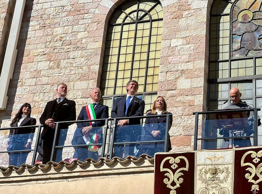 La presidente della Regione Umbria, Stefania Proietti, insieme alle autorità presenti ha accolto la presidente del Consiglio Giorgia Meloni e il ministro della cultura Alessandro Giuli. Alle celebrazioni sono intervenuti insieme alla Presidente Proietti,  anche il vicepresidente della Regione, Tommaso Bori, l’assessore al Turismo, Simona Meloni, la Presidente dell’Assemblea legislativa, Sarah Bistocchi.