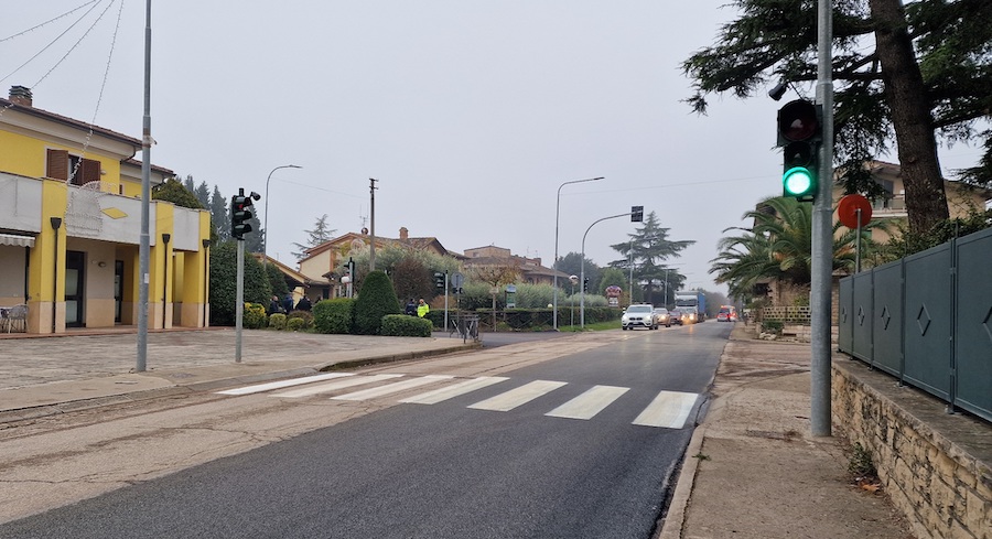 È in funzione da mercoledì 3 dicembre il semaforo che regola il traffico all’interno del centro abitato di Schiavo nel comune di Marsciano.
