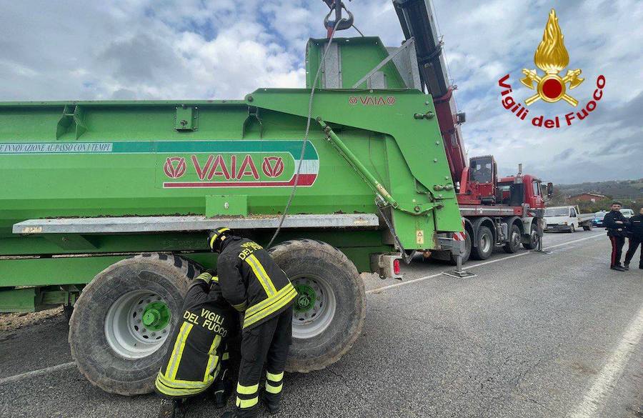 Per la rimozione del rimorchio, sono intervenuti i Vigili del fuoco della sede centrale di Perugia, supportati dall’autogru proveniente dal comando di Perugia per le operazioni di sollevamento e la rimozione del mezzo. Non si segnalano persone ferite coinvolte nell’incidente. Sul posto erano presenti i Carabinieri di Marsciano per i rilievi e la gestione della viabilità che è stata ripristinata una volta rimosso il rimorchio.
