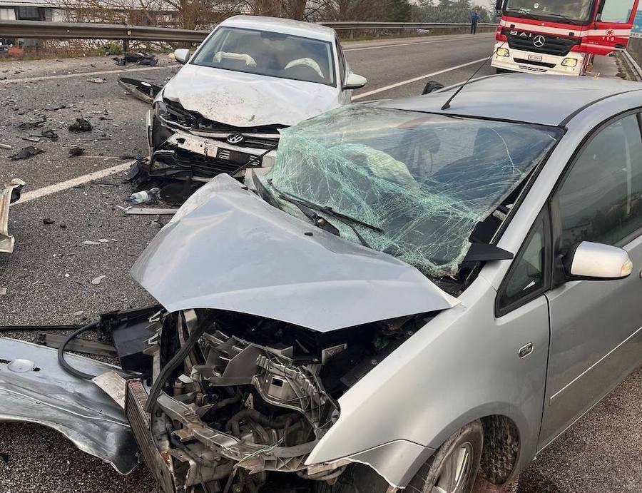 I Vigili del Fuoco hanno provveduto all'estrazione di una donna rimasta incastrata nell'abitacolo; uno dei feriti è stato trasportato in ospedale con l'elisoccorso