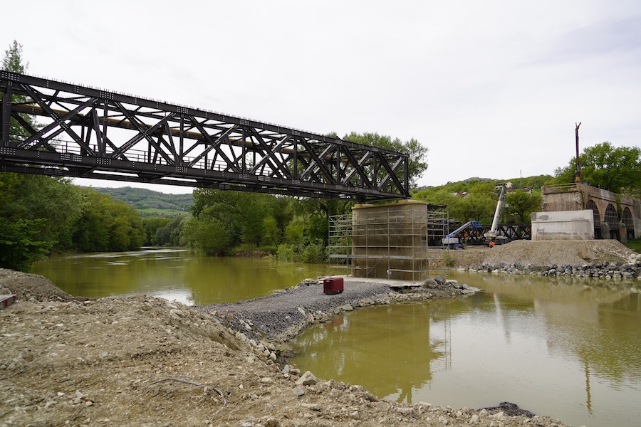 Nella giornata di ieri è stato posizionata la prima campata della struttura in ferro del ponte di Montemolino sul fiume Tevere. La seconda parte, quella che unirà la sponda montecastellese a quella tuderte, verrà installata nei prossimi due giorni di lavoro.