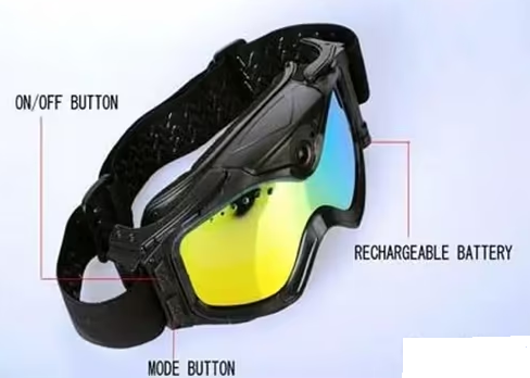 Occhiali da sci con telecamera 5 mpx e slot per memoria di registrazione. Lenti polarizzate, 100% UV protection, helmet Compatiblem Anti-fog Coated.