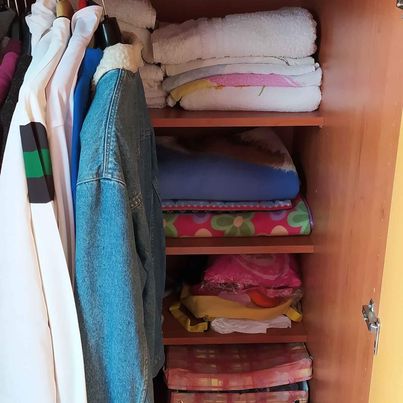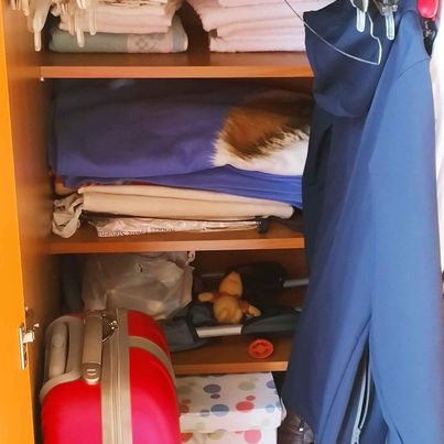 Armadio doppio in legno, con letto sovrastante per ospite. Viene fornito con 2 barre appendiabiti, 6 mensole interne estremamente comode e capienti, protezione anticaduta dall'alto e scala per salire e scendere dal letto.