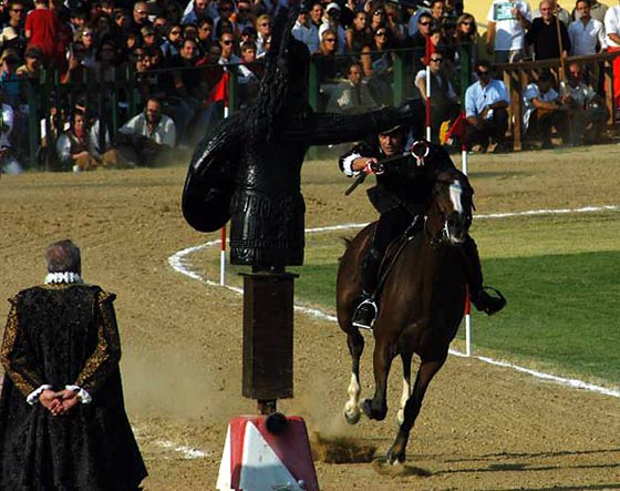Cavallo e Cavaliere del rione Pugilli, che come bandiera ha la nera aquila di Todi per ricordare l’esilio a Foligno di fuoriusciti tuderti, alimentano le speranze di cancellare la delusione della Giostra della sfida