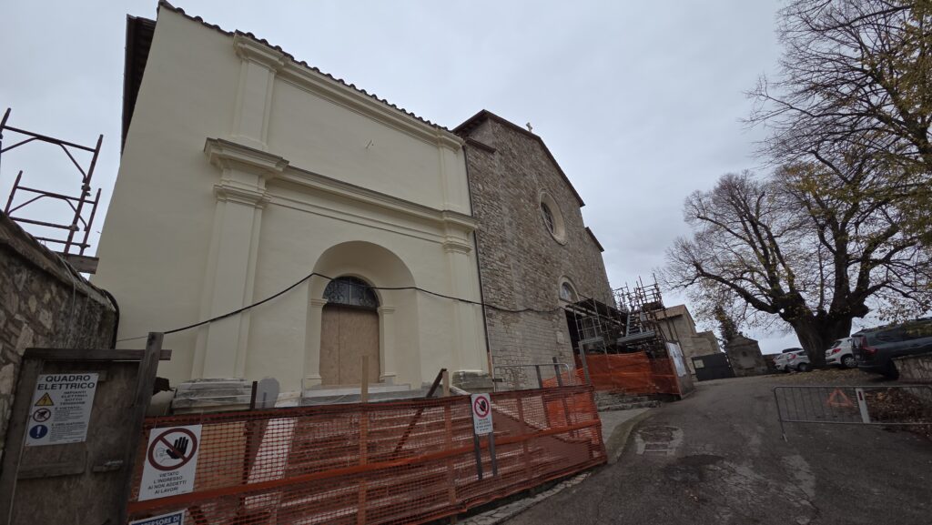 L’impalcatura che nascondeva la facciata è stata già smontata: verso la conclusione i lavori finanziati con 1,6 milioni di euro con i fondi della ricostruzione post-sisma