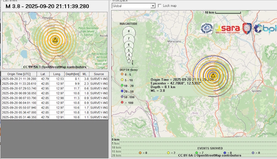 L’evento sismico si è verificato alle 23.11 di sabato 20 settembre, ad una profondità di 8,1 km; non si registrano al momento danni
